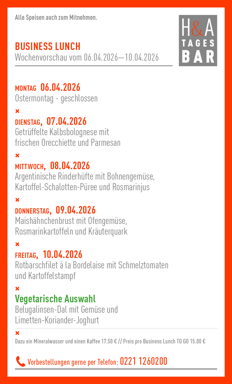 📞 Reservierungen & Vorbestellungen: 0221 1260200