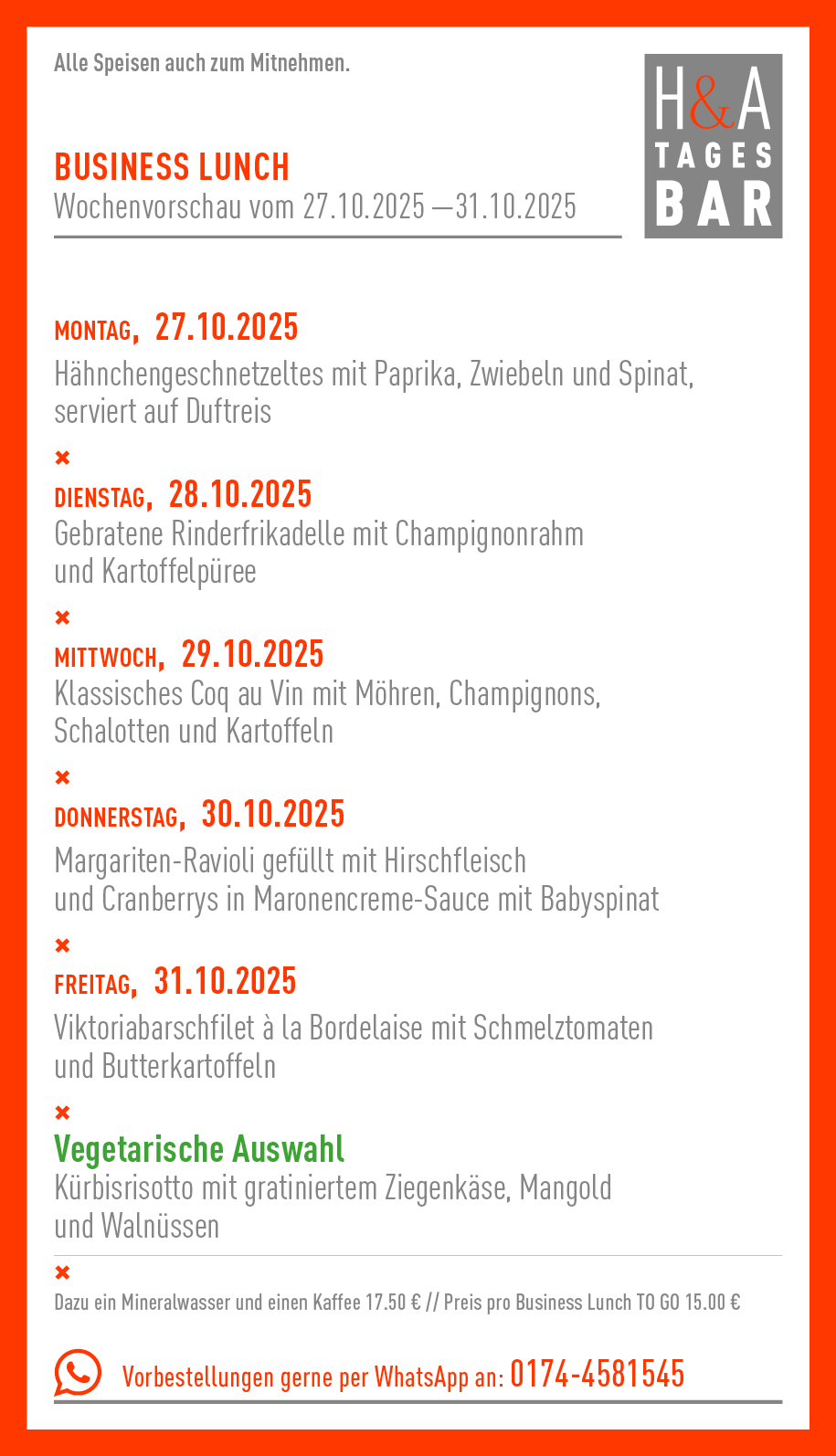 BUSINESS LUNCH KW44 auch zum Mitnehmen