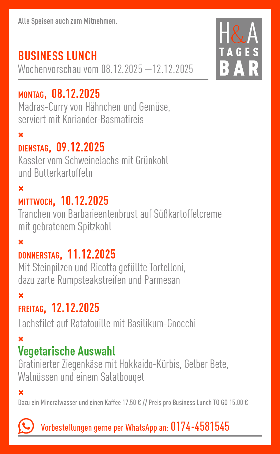 Ob ihr vor dem Geschenkestress flüchtet, zwischen Terminen auftanken wollt oder einfach ein bisschen Wärme sucht – unser Business Lunch ist euer kulinarischer Rückzugsort.